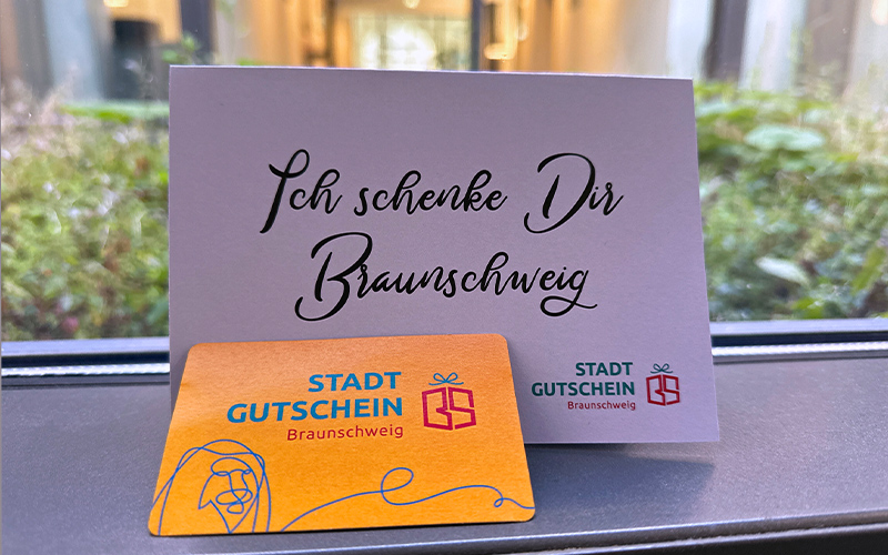 Fünf Jahre Stadtgutschein Braunschweig: 2.000 Stadtgutscheine im Wert von 50 Euro sind im Oktober 2025 mit fünf Euro Rabatt in der Touristinfo, Kleine Burg 14, erhältlich.