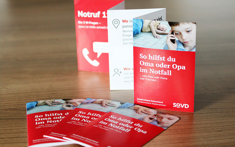 Was müssen Kinder tun, wenn Eltern oder Großeltern einen Unfall haben oder anderweitig in eine Notsituation geraten? In einem Flyer erklärt der Sozialverband Deutschland (SoVD) in Braunschweig mit einfacher Sprache, was Kinder beachten müssen und welche Informationen beim Notruf unbedingt erforderlich sind. „In einer solchen Situation kommt es auf jede Sekunde an. Deshalb haben wir uns entschieden, den Flyer zu entwickeln. In einer kurzen und einfachen Checkliste wird den Kindern genau erklärt, was sie wann machen sollen, um Unsicherheiten bei den Kindern in so einer Situation zu vermeiden“, sagt Kai Bursie, SoVD-Regionalleiter in Braunschweig. Der Flyer sollte an gut sichtbaren Stellen im Haus aufgehoben werden.