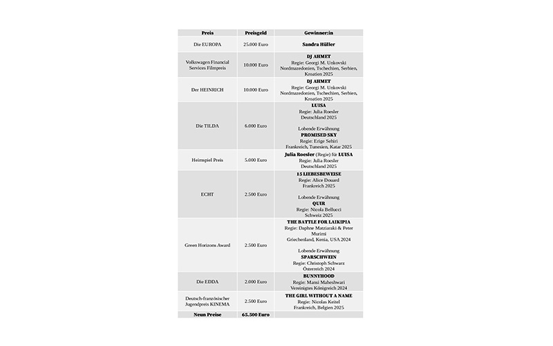 Dr. Carsten Krebs, der für Volkswagen Financial Services den HEINRICH übergab, lobte dabei das Festival als Plattform: „Auf dem Braunschweig International Film Festival entsteht stets etwas Neues – und ich spreche nicht nur von der eigentlichen Festivalwoche, sondern von all dem, was das ganze Jahr hindurch passiert. Das macht uns als Hauptsponsor und Braunschweig insgesamt stolz!“ Das Preisgeld für den Publikumspreis Der HEINRICH wird, so sieht es der Preis vor, hälftig zwischen Regie und dem deutschen Verleih Neue Visionen Filmverleih aufgeteilt, seines Zeichens einer der führenden unabhängigen Filmverleih-Unternehmen in der Bundesrepublik.