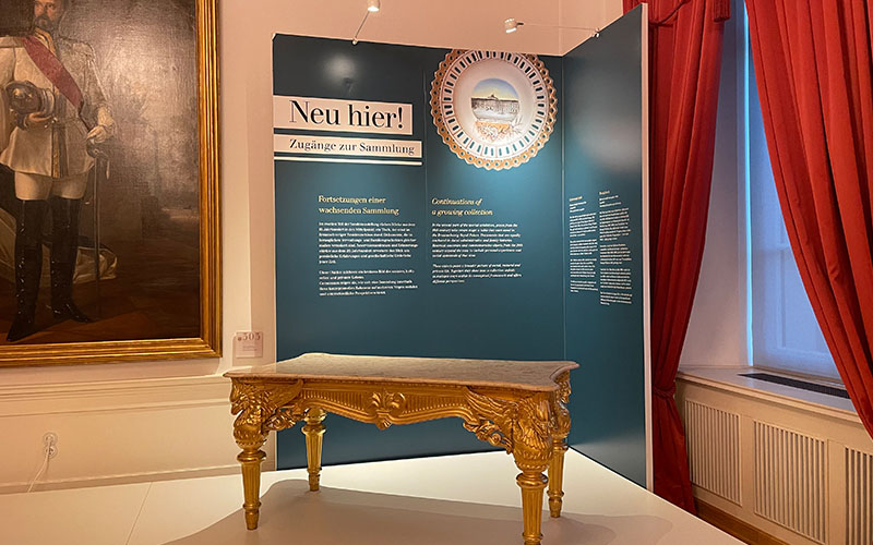 Zu sehen sind u.a. Souvenirs aus der Zeit des Jugendstils, Gemälde, sowie Bauschmuck des ehemaligen Schlosses. Das älteste Exponat stammt aus dem Jahr 1741, das jüngste aus den 1970er Jahren – ein spannender Bogen, der die Entwicklung des Ortes ebenso wie den Wandel musealer Sammlungspraxis sichtbar macht.