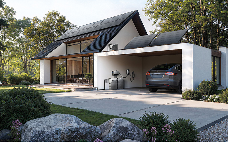 Eine zentrale Steuereinheit verbindet mehrere modulare Solarspeichersysteme miteinander und speist den Solarstrom gebündelt ins Haus ein.
