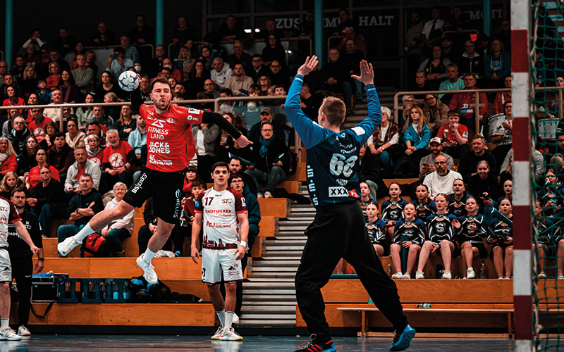 Für Philipp Krause war es aus mehrerlei Sicht eine fröhliche Rückkehr. Nach seinem Auslandssemester in den USA wurde er in der Alten Waage vom Publikum mit Jubel und Beifall empfangen, er steuerte zudem zwei Tore zum Sieg bei. Und, ganz wichtig, Krause und seine Teamkollegen gingen als Sieger von der Platte. „Es ist wirklich toll, wieder hier zu sein und dann auch noch so empfangen zu werden“, freute sich der 28-Jährige. Selbst Oberbürgermeister Thorsten Kornbum war, so verriet dieser im Interview, extra in die Alte Waage gekommen, um Krause spielen zu sehen. Dass der Rückraum-Akteur dann in der Partie erst beim dritten Versuch das Söhrener Tor traf – geschenkt!