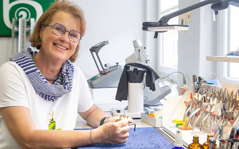 Ein Alleinstellungsmerkmal des Traditionsunternehmens ist zudem die eigene, vollständig mit modernster Technik ausgestattete Werkstatt, in der Brillen individuell gefertigt, Gläser präzise eingearbeitet und Anpassungen oder Reparaturen direkt vor Ort vorgenommen werden. Diese handwerkliche Unabhängigkeit des Traditionsunternehmens ermöglicht nicht nur höchste Qualitätsstandards und klassische Augenoptikerarbeit aus Meisterhand, sondern auch eine besonders flexible und schnelle Umsetzung individueller Kundenwünsche.