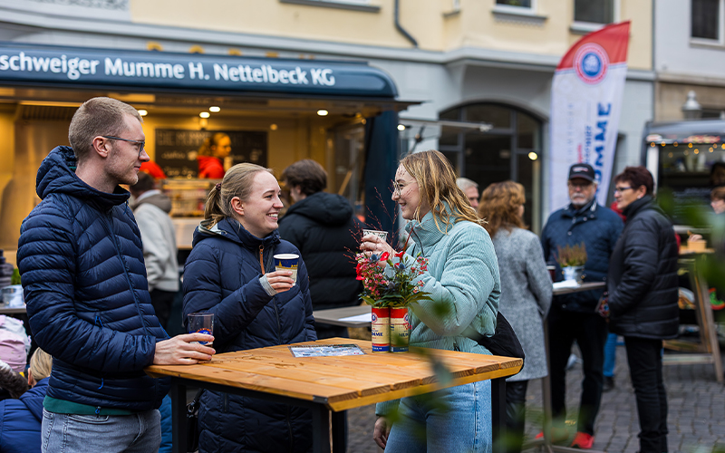 Ein Wochenende voller Leckereien und geselligem Beisammensein: Die mummegenussmeile, präsentiert von der Braunschweigischen Landessparkasse (BLSK), lockte von Freitag bis Sonntag zahlreiche hungrige und durstige Gäste in die Braunschweiger Innenstadt und die Geschäfte. Drei Tage lang probierten die Besucherinnen und Besucher die vielfältigen mit Mumme verfeinerten Speisen und Getränke, stöberten durch aktuelle Herbsttrends und das kulinarische Angebot der Gastronomen und Marktleute. „Die Stimmung war gut. Es bildeten  sich teilweise Schlangen an den Ständen und es wurde viel gegessen und getrunken. Die Besucherinnen und Besucher hatten eine schöne Zeit. Wir sind zufrieden“, sagt Nina Fritzler, Bereichsleiterin beim Stadtmarketing.